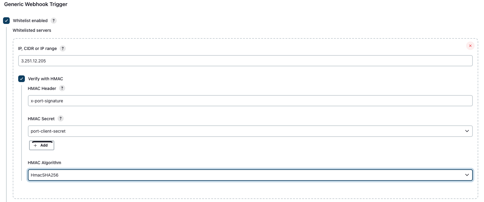• In the HMAC Secret field, choose a secret containing your port-client-secret.