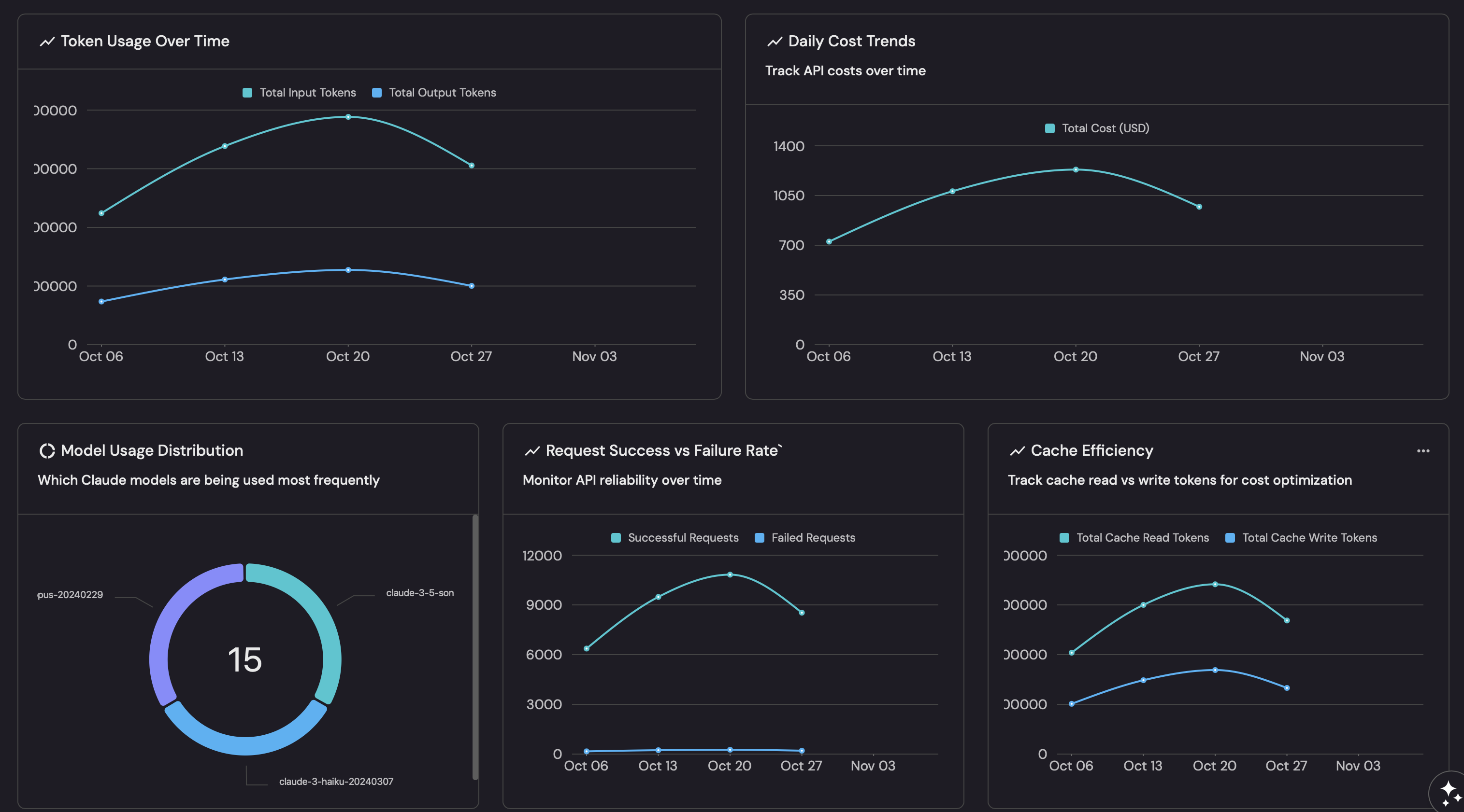 • Description: Track Claude Code sessions, commits, and PRs over time.