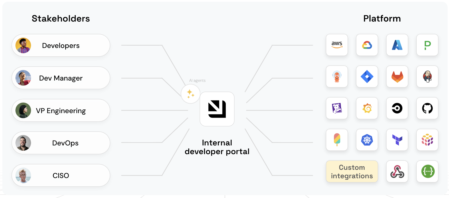 Port is your internal developer portal - it integrates with your 3rd-party platforms and centralizes everything developers and other stakeholders in your organization need to do and know about your software.