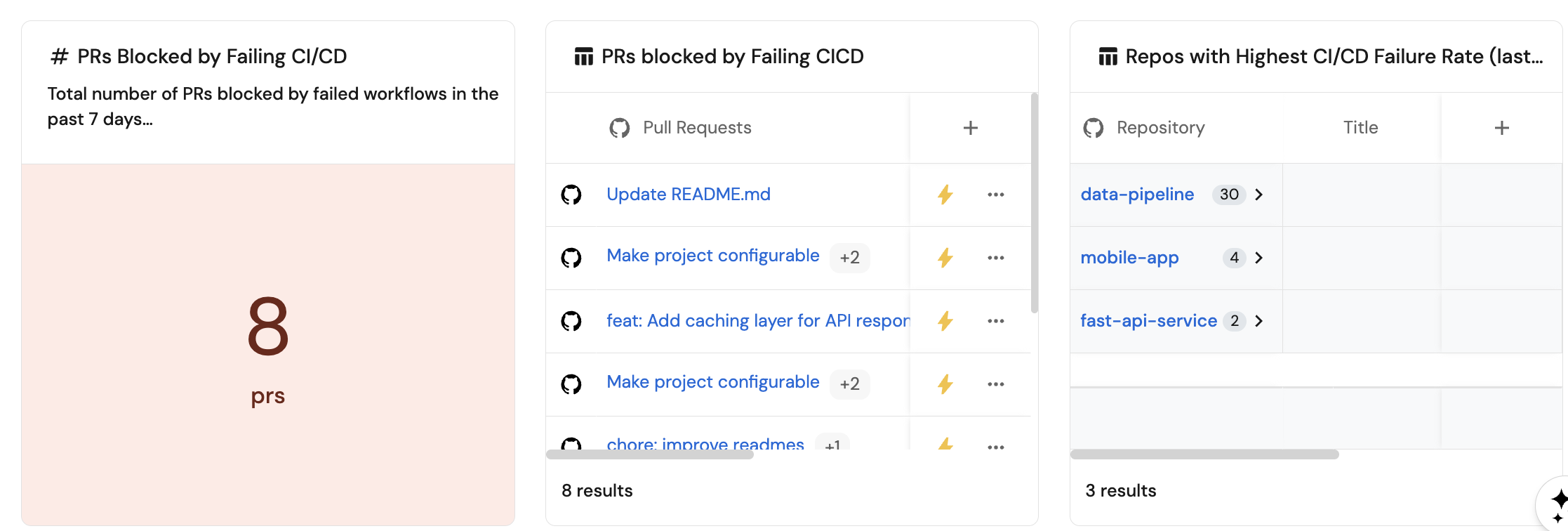 - Monitor PRs blocked by failing CI/CD to understand delivery bottlenecks.