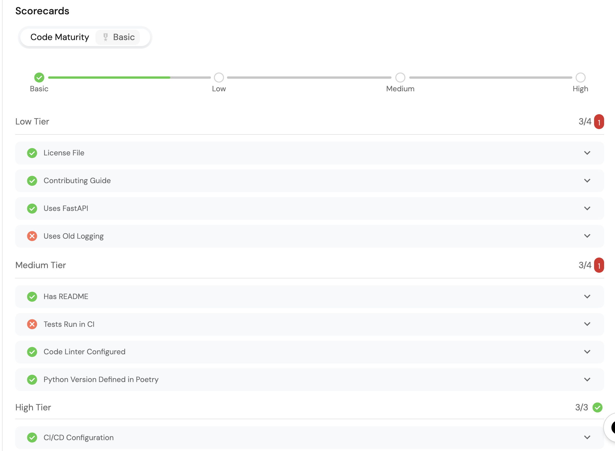Code maturity standards help teams to consistently follow engineering best practices like testing, linting, documentation, and CI. By tracking these signals with Port scorecards via GitLab file search, teams can monitor compliance, guide maturity, and reduce production risk.