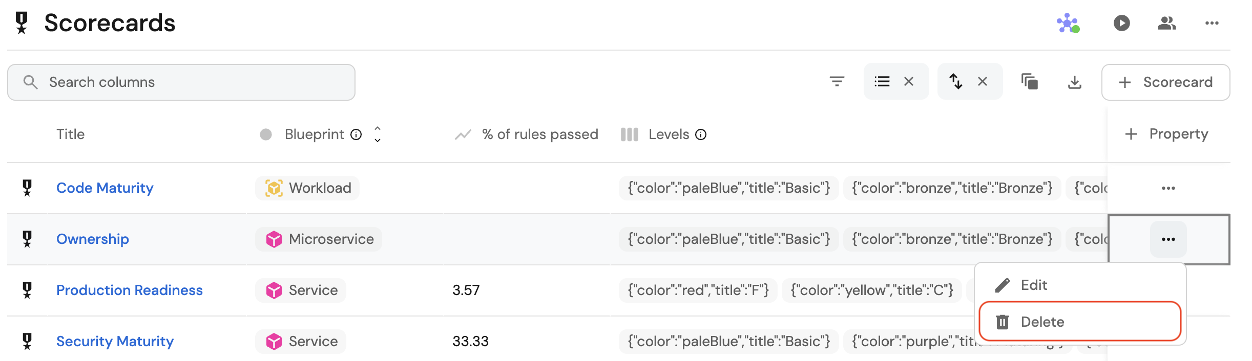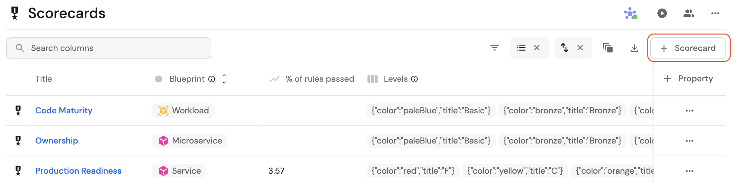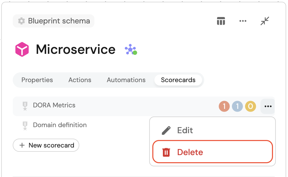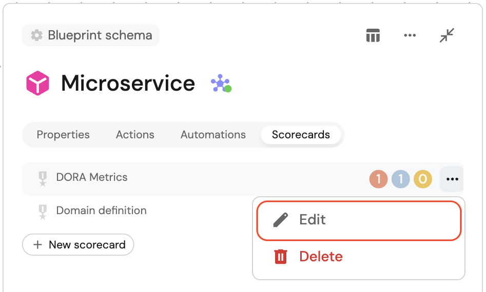 2. Expand the relevant blueprint, and click on the Scorecards tab.